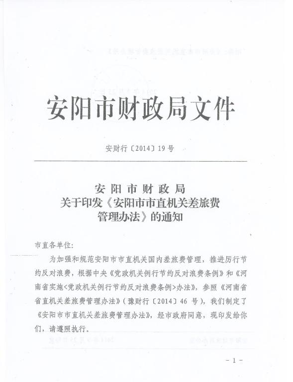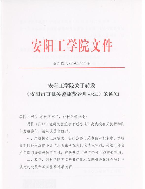 安阳工学院关于转发《安阳市直机关差旅费管理办法》的通知