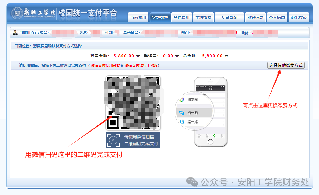 学生需通过“安阳工学院校园统一支付平台”(以下简称支付平台)自主缴纳相关费用。该支付平台支持微信、支付宝缴费,学校不受理现金缴费和银行卡转账、代扣等缴费方式。