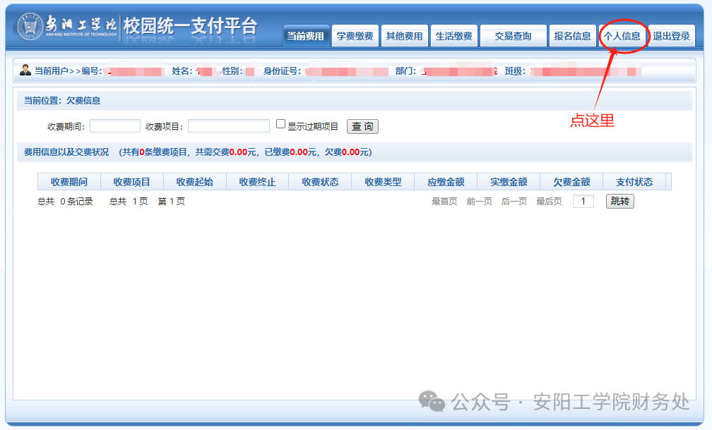 方法四:登录安阳工学院网上办事大厅,点击“校园统一支付平台”图标,可免登录进入支付平台。